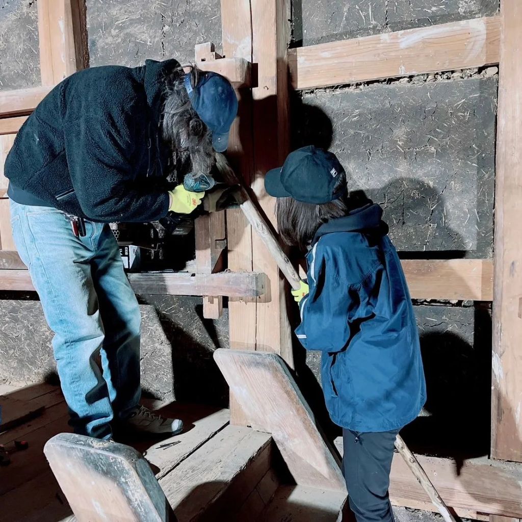 この日は、2階の箪笥を移動させ、もろい床板を付け直しました。