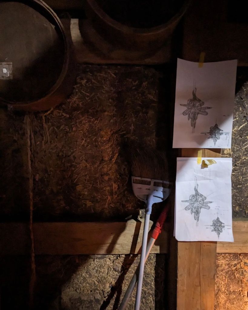 蔵には、中村さんのドローイング(スケッチ)が貼られています。