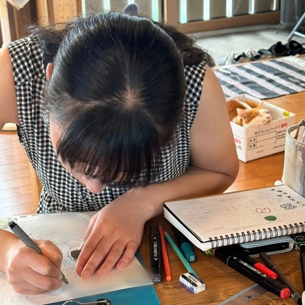 #写真のペンも色鉛筆もサポーターの私物です