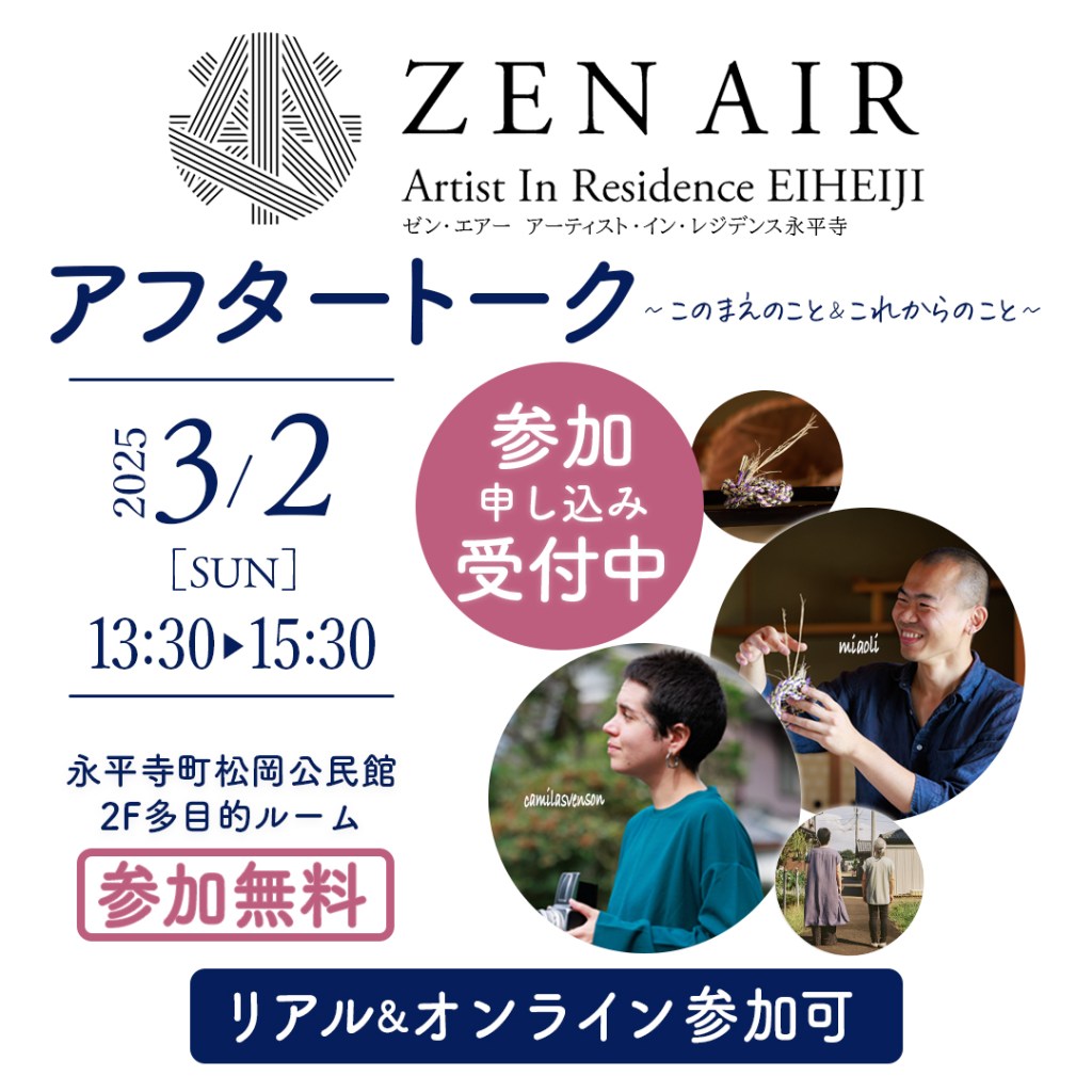 本年度も、ZEN AIR EIHEIJI「アフタートーク~このまえのこと&これからのこと」を開催します!